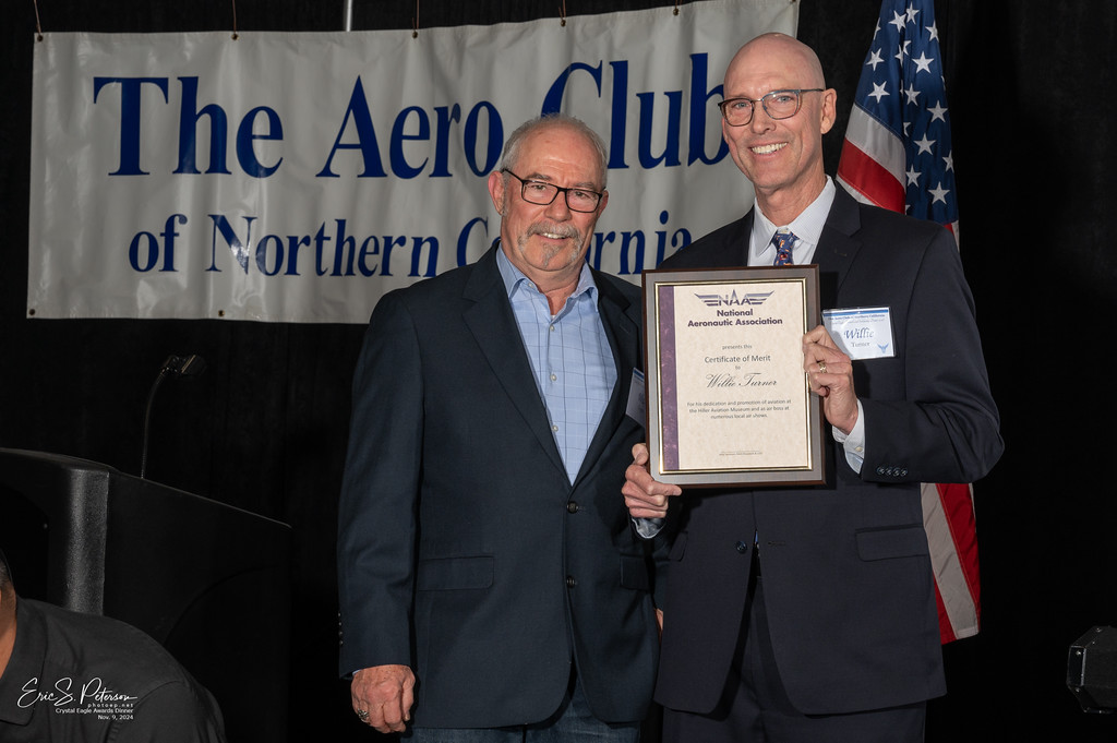 The 41st Crystal Eagle Awards and Scholarship Dinner will be at 6:00 p.m. Saturday, November 15th, 2025, at the Hiller Aviation Museum, 601 Skyway Road, at San Carlos Airport. The cocktail Reception starts at 6:00 p.m., and dinner will be served at 7:00 p.m.