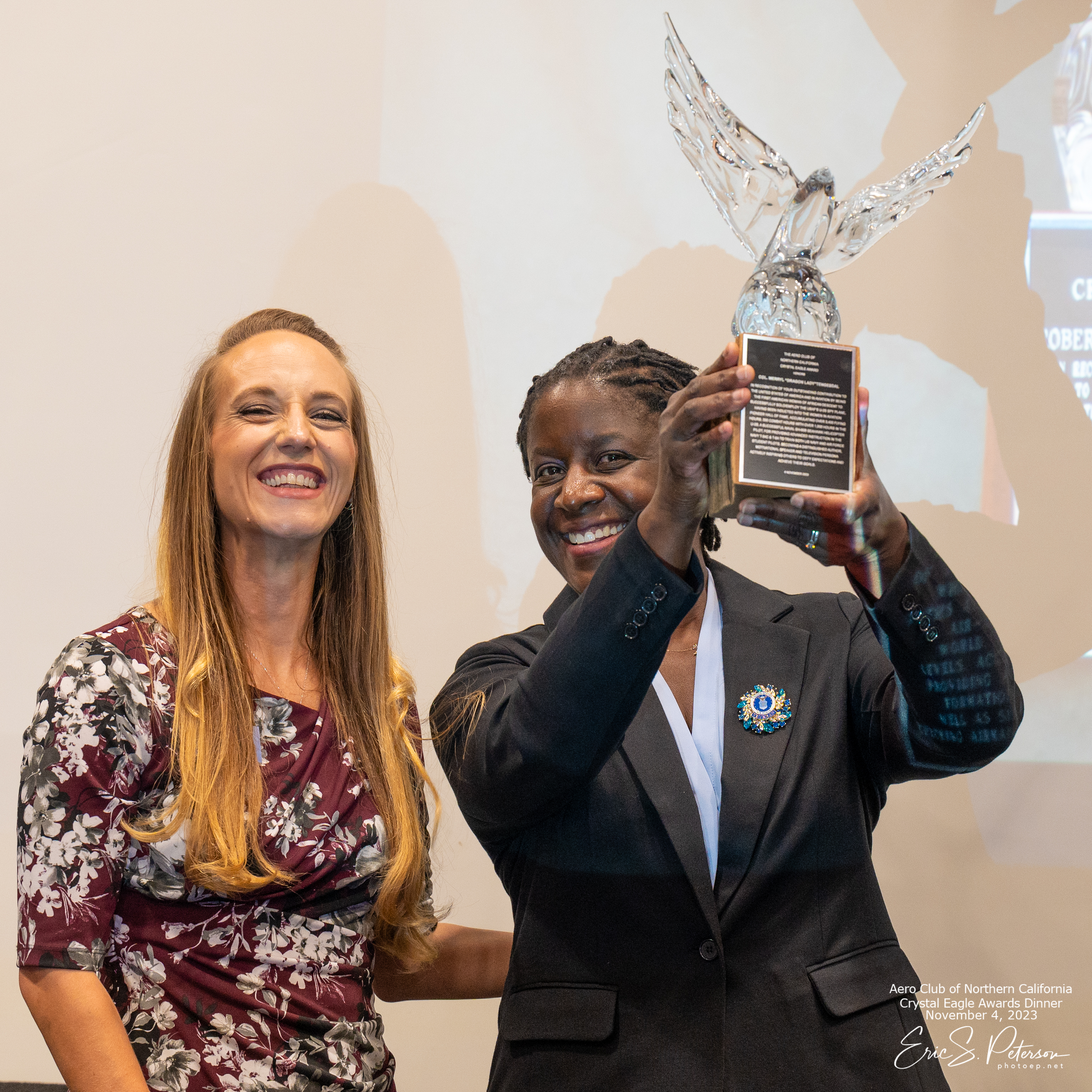 The Aero Club first presented the Crystal Eagle Award in 1983 to legendary aviator Gen. Jimmy Doolittle. Among past recipients are Gen. Chuck Yeager, Stanley Hiller Jr., Jim Nissen, George Cooper, Jeana Yeager, James S. Ricklefs, Darryl Greenamyer, Clay Lacy, Paul Poberezny, Wayne Handley, Eileen Collins, Sean D. Tucker, Steve Fossett, Brian Shul, C.E. "Bud" Anderson, Julie Clark, Rod Machado, John and Martha King, and Barry Schiff.